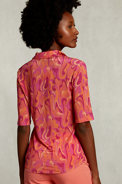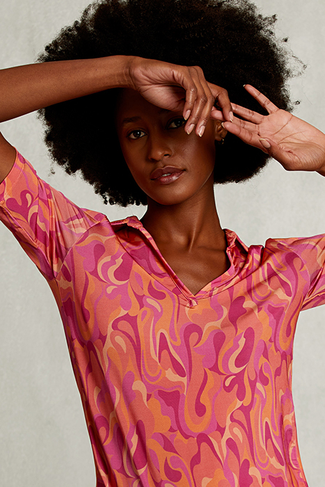 This fantasy-patterned top features a V-neck collar and short sleeves, perfect for a stylish summer look. Our model wears a size S, providing a comfortable fit that's sure to flatter. To keep your new favorite top looking its best, machine wash at 30°C, following the care instructions to ensure a long-lasting wear.