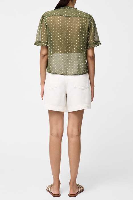 POLKA DOT SHORT SLEEVE RUFFLE TOP KHAKI/SUMMER WHITE