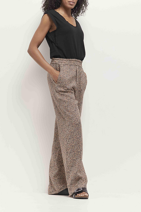 PRIMA - FLUID SAND TROUSERS WITH MINI GIRAFFE PRINT