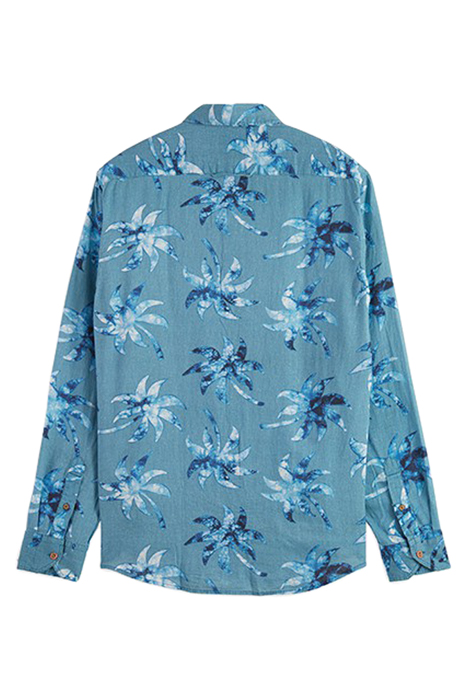 PRINTED LINEN-VISCOSE BLEND SHIRT TURQUOISE WAX LEAF AOP