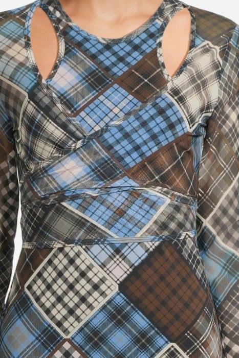 PRINTED MESH WRAP MAXI DRESS SILVER LAKE BLUE