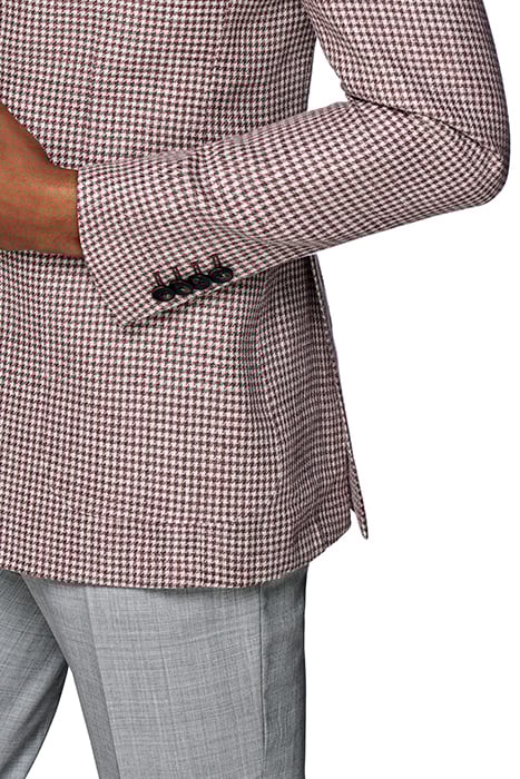 Elevate your style with the Purple Houndstooth Havana Blazer from Suitsupply. This chic blazer combines a classic houndstooth pattern with a vibrant purple hue, making it a standout piece in any wardrobe. Crafted from high-quality fabric, it offers a tailored fit that flatters your silhouette while keeping you comfortable. Perfect for both formal occasions and smart-casual outings, layer it over a crisp shirt or a simple tee for a polished yet relaxed look. Add a touch of sophistication to your ensemble with this timeless blazer!