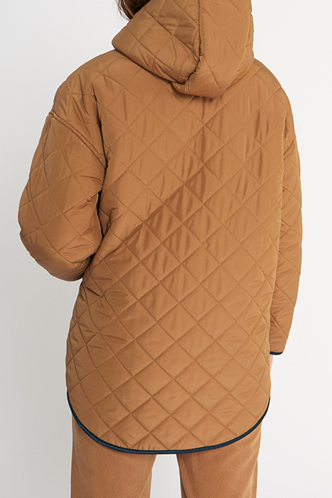 Women’S Reversible Parka . High Neck, Hood, Long Sleeves . 1 Tobacco Side, Quilted, 2 Side Pockets . 1 Ecru Side, Sherpa, 2 Side Pockets . Braid On Hood Trim, Cuffs And Hem . Reversible Zip To Fasten.