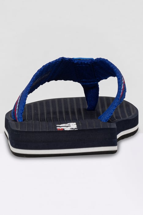 Summer Classic Comfortable T-Bar Slipper With Yarn Dyed Woven Strap And Tpu Moulded Logo Patch.