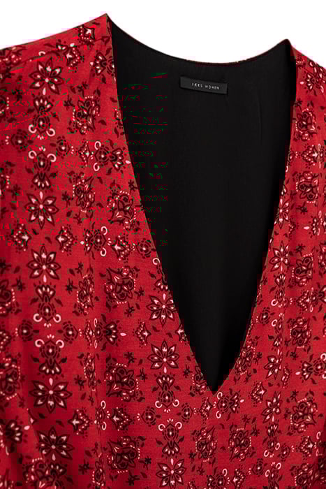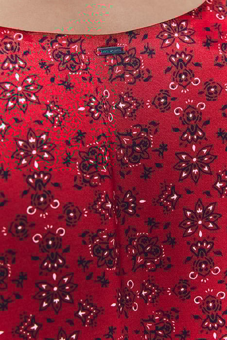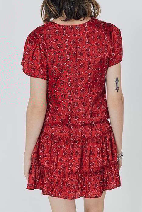 RED BANDANA PRINT VISCOSE SHORT DRESS