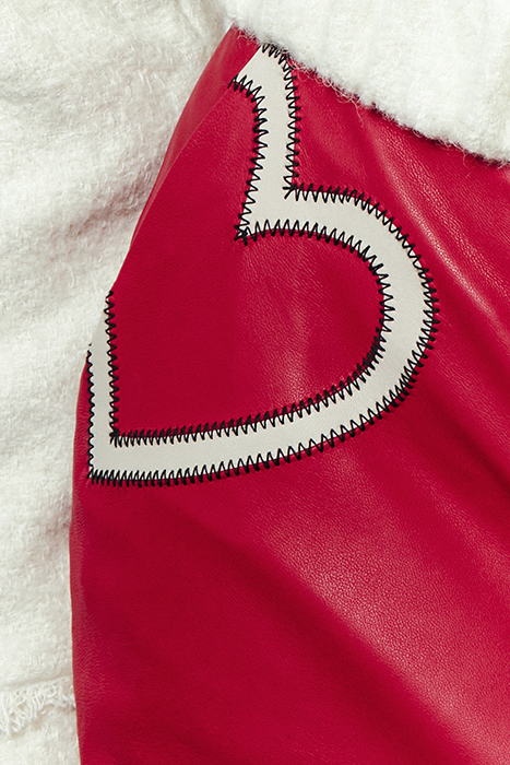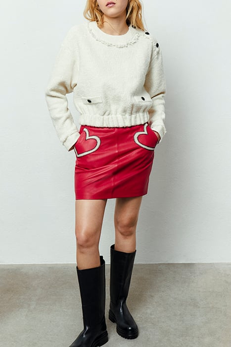 RED LEATHER SKIRT WITH WHITE HEARTS ON POCKETS