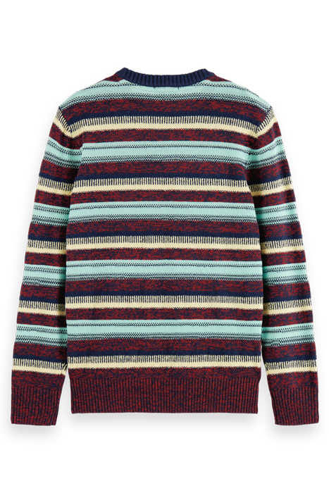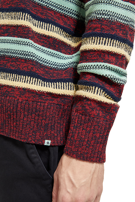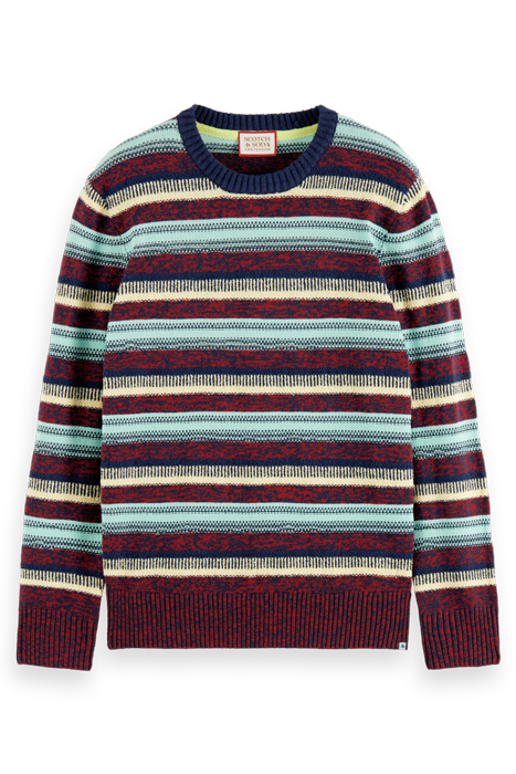 REGULAR FIT MIXED YARN STRIPE MIX PULLOVER RUBY MELANGE