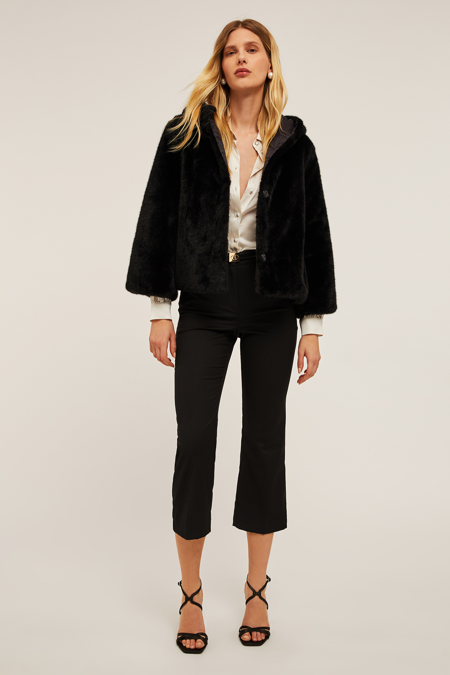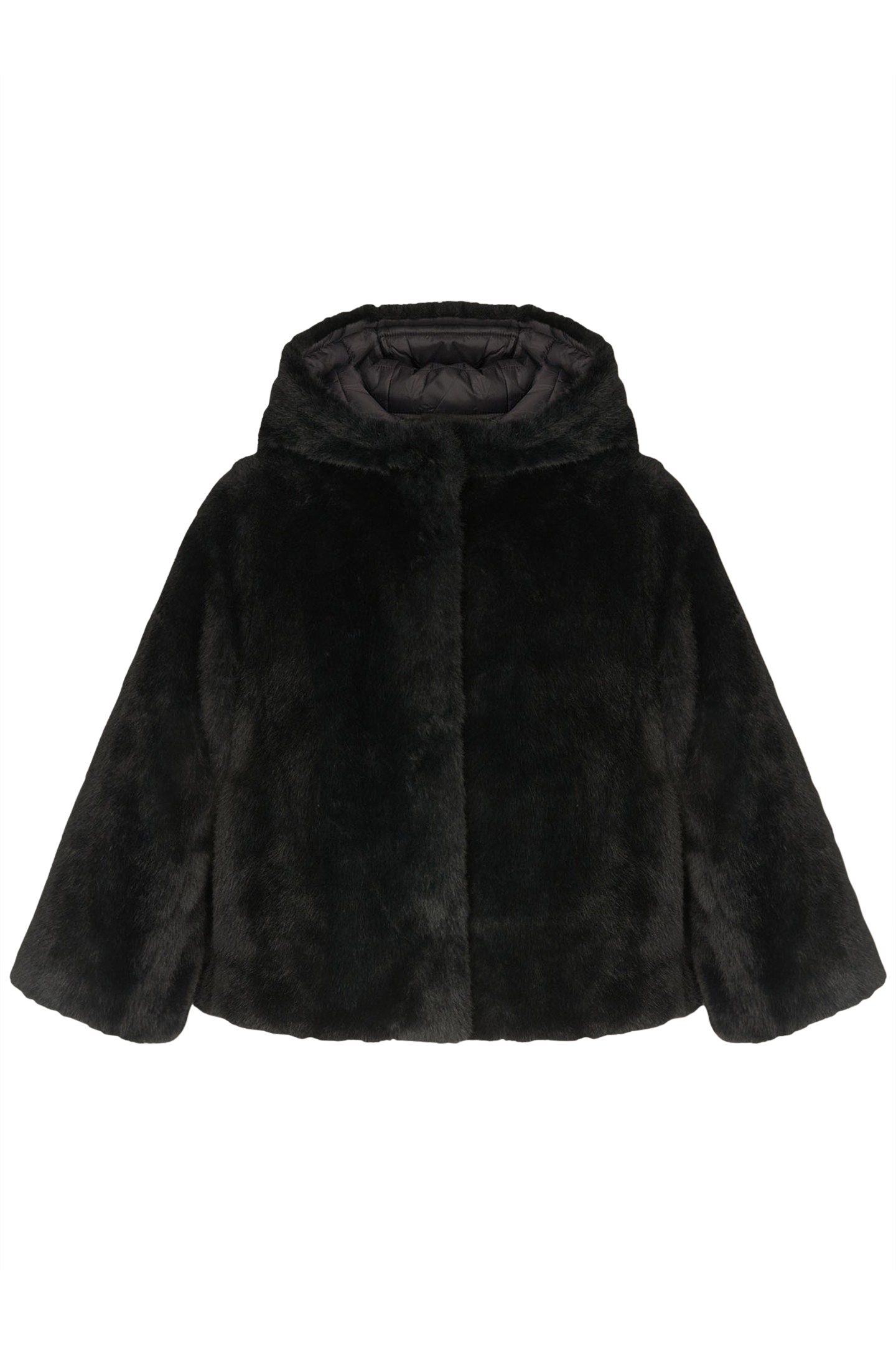 Reversible Teddy Cape With Internal Padding, Front Opening With Hood And Hidden Snap Buttons Three-Quarter Length Sleeves Flared At The Bottom,