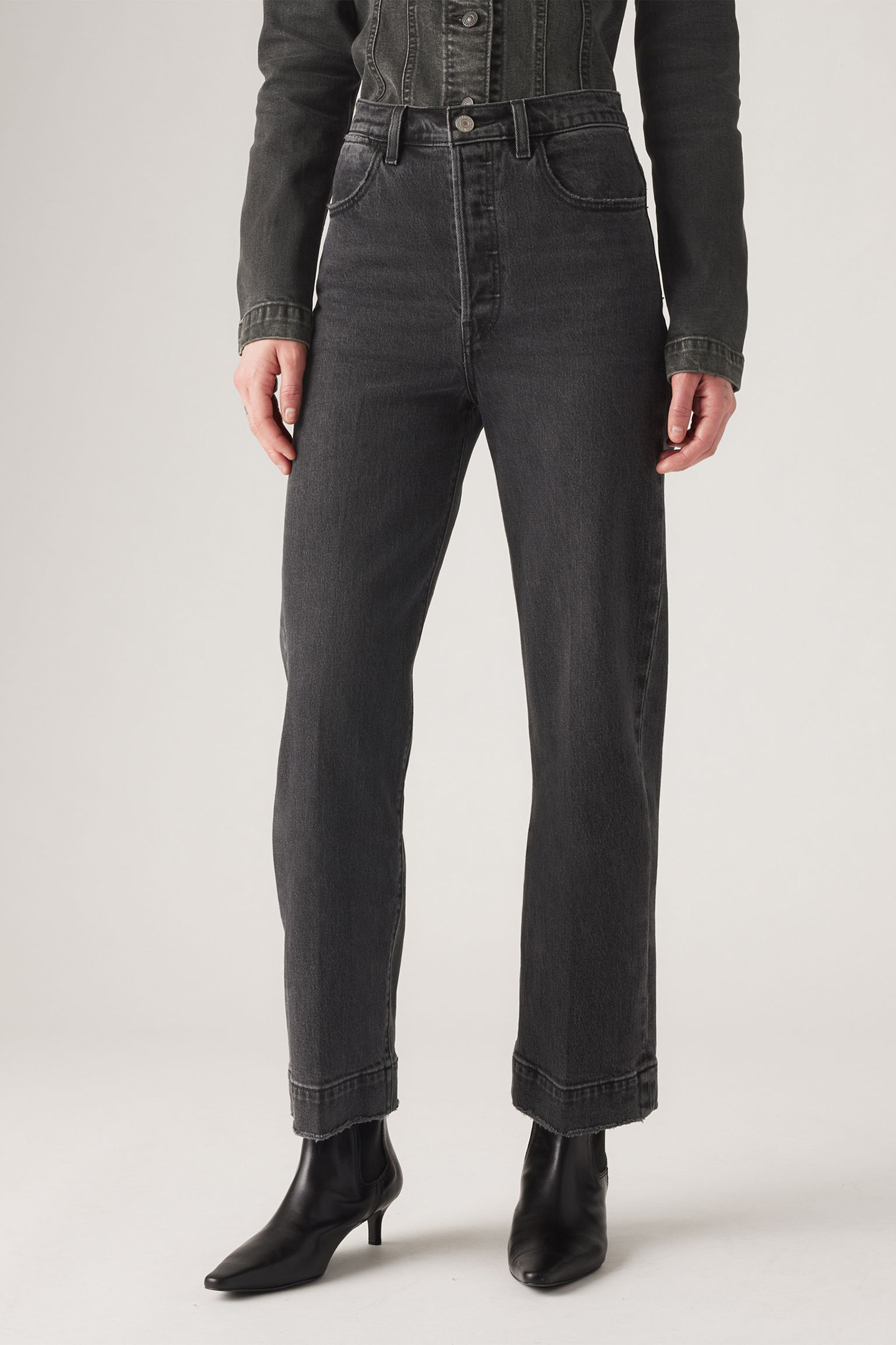 RIBCAGE STRAIGHT JEAN WITH TAILORED ANKLE IN BLACK