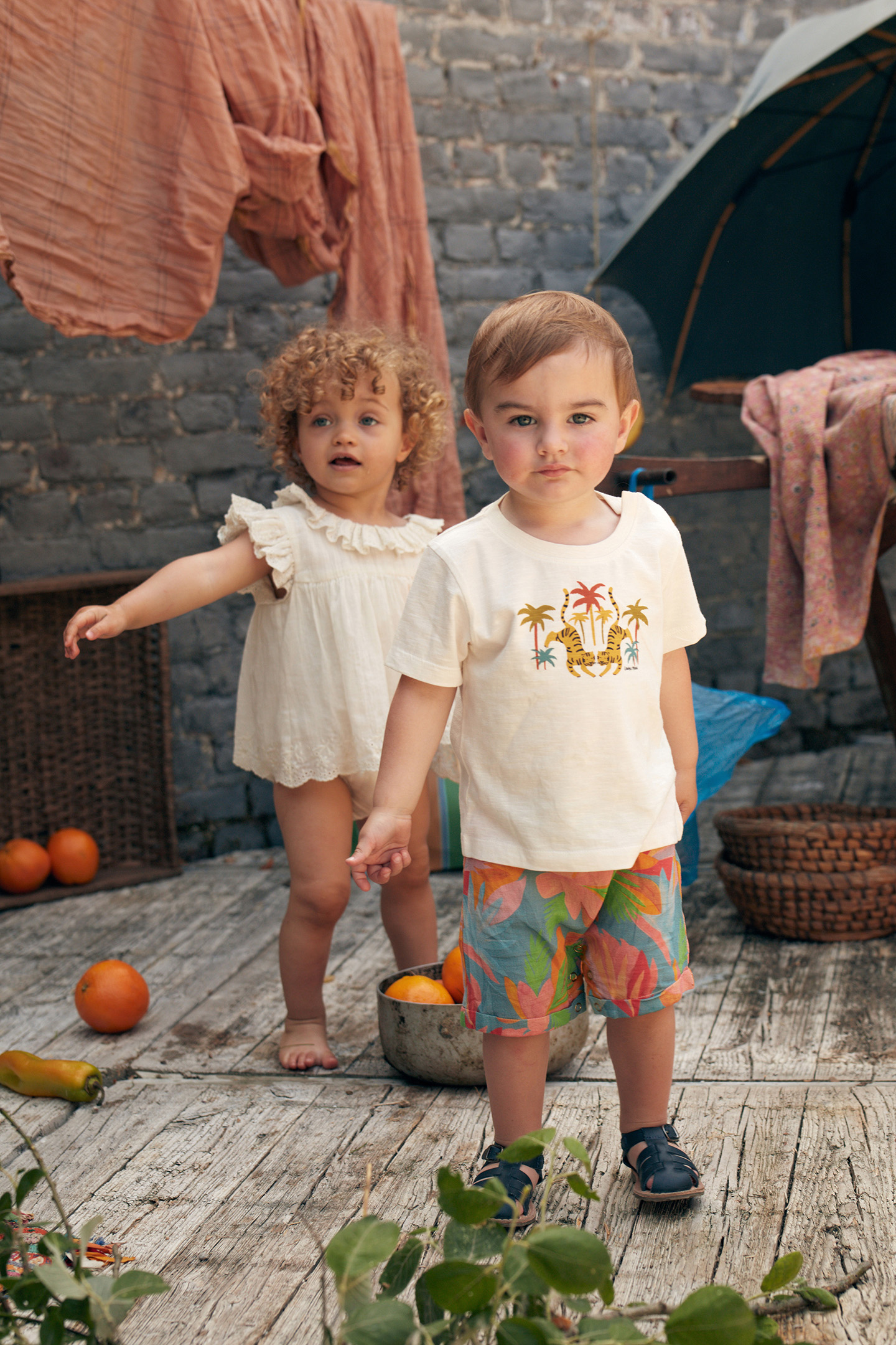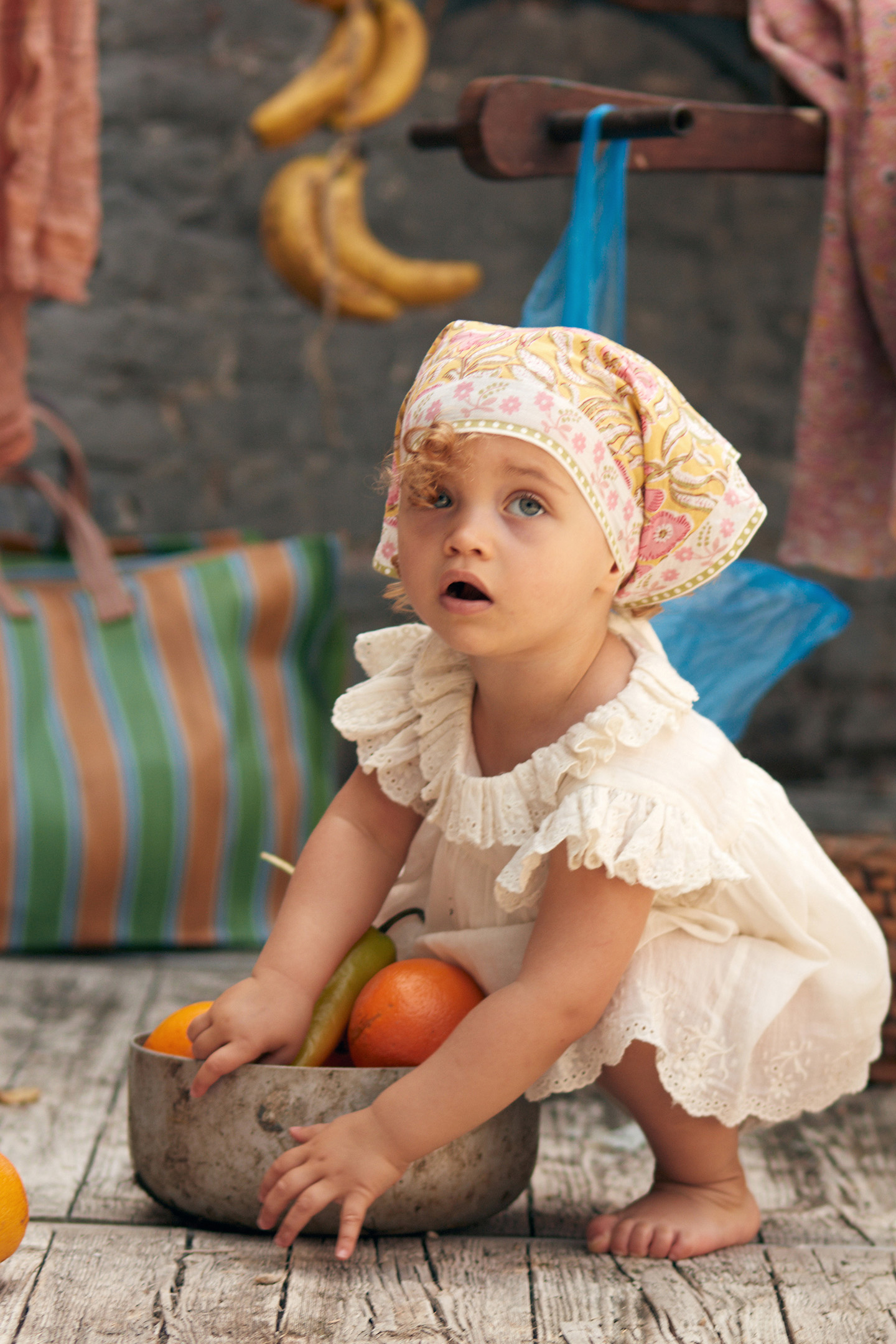 A Vintage-Style Romper With Delicate Embroideries And Openwork, Perfect For Holidays Full Of Scents Thanks To Its Jasmine White Color. Its Pierrot Collar And Large Ruffle Give Off A Pretty Volume That Will Make All Little Girls, Even The Youngest, Just Want To Dance.