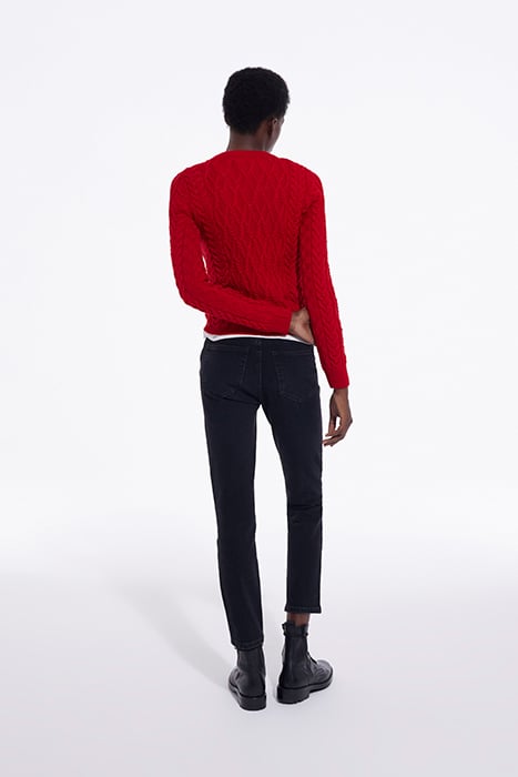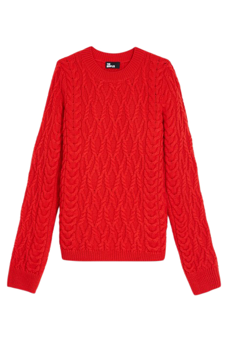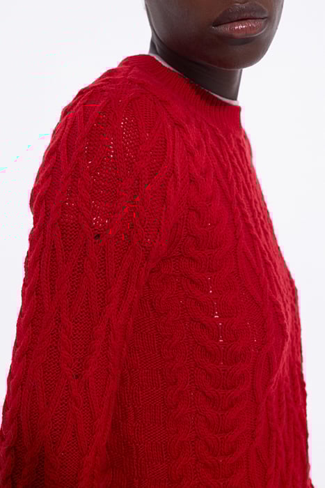 ROUND-NECK CABLE WOOL SWEATER TANGO RED