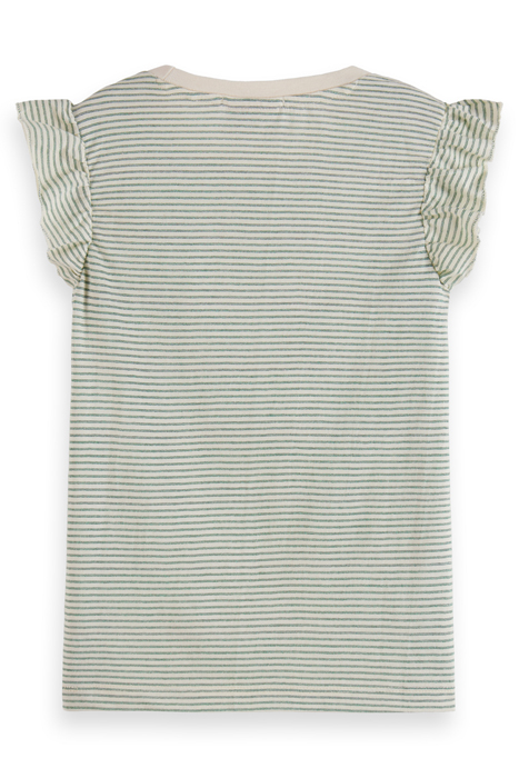 RUFFLE DETAIL LUREX STRIPE RELAXED-FIT T-SHIRT OCEAN STRIPE