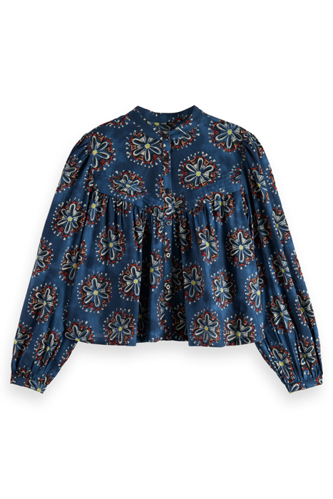SHIRT WITH PINTUCK YOKE AND GATHERING B SIDES BLOCK PRINT MA