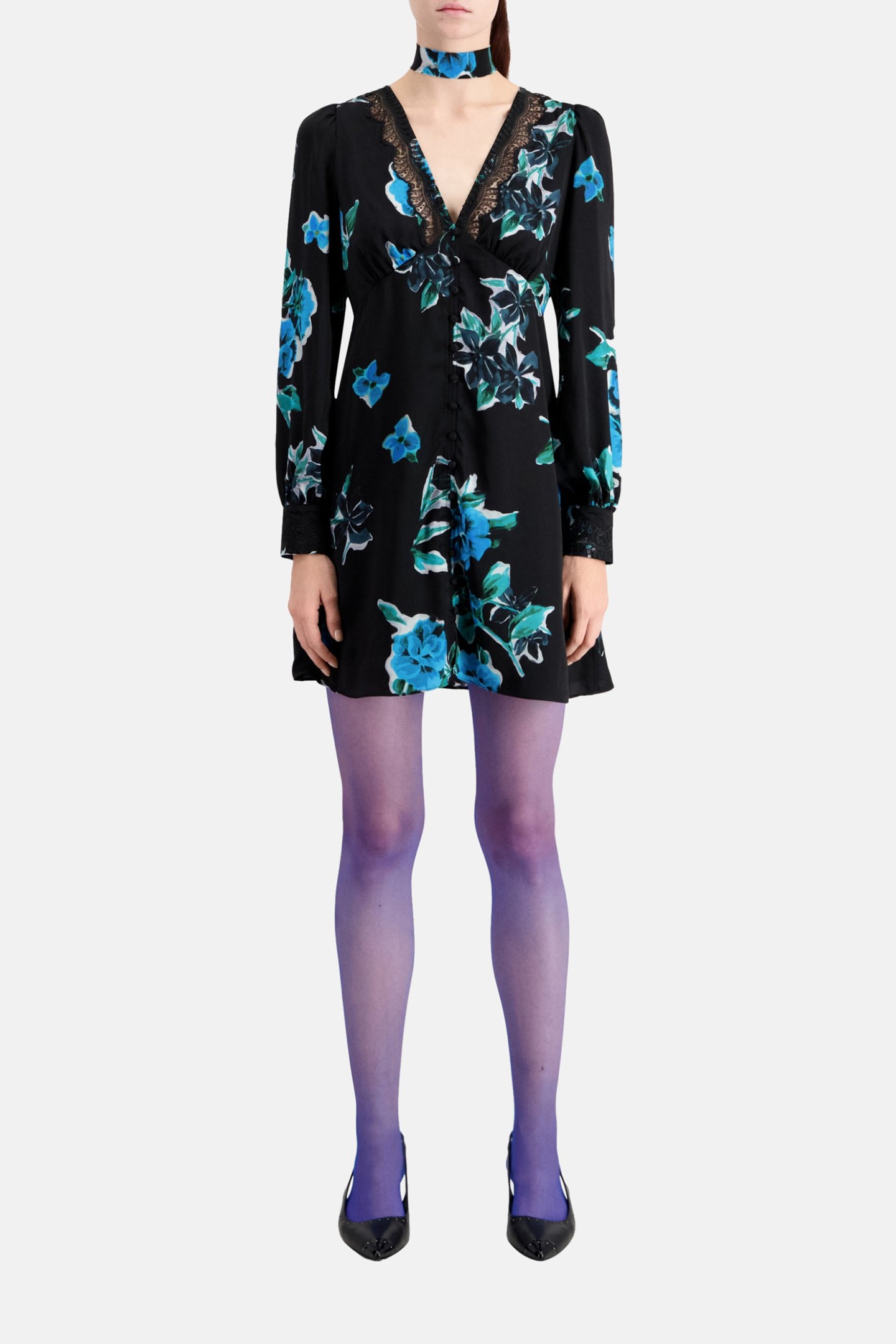 SHORT PRINTED V-NECK DRESS BLACK BLUE