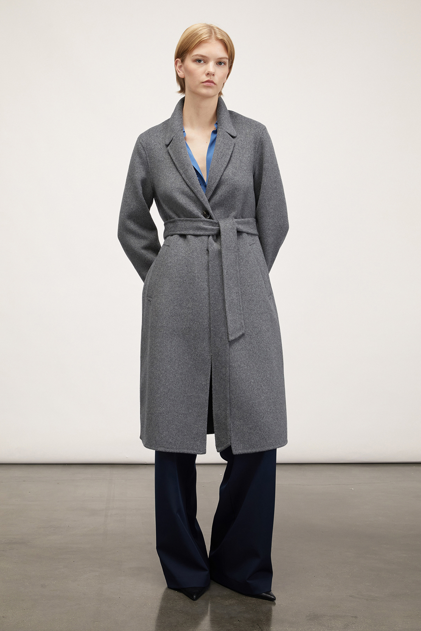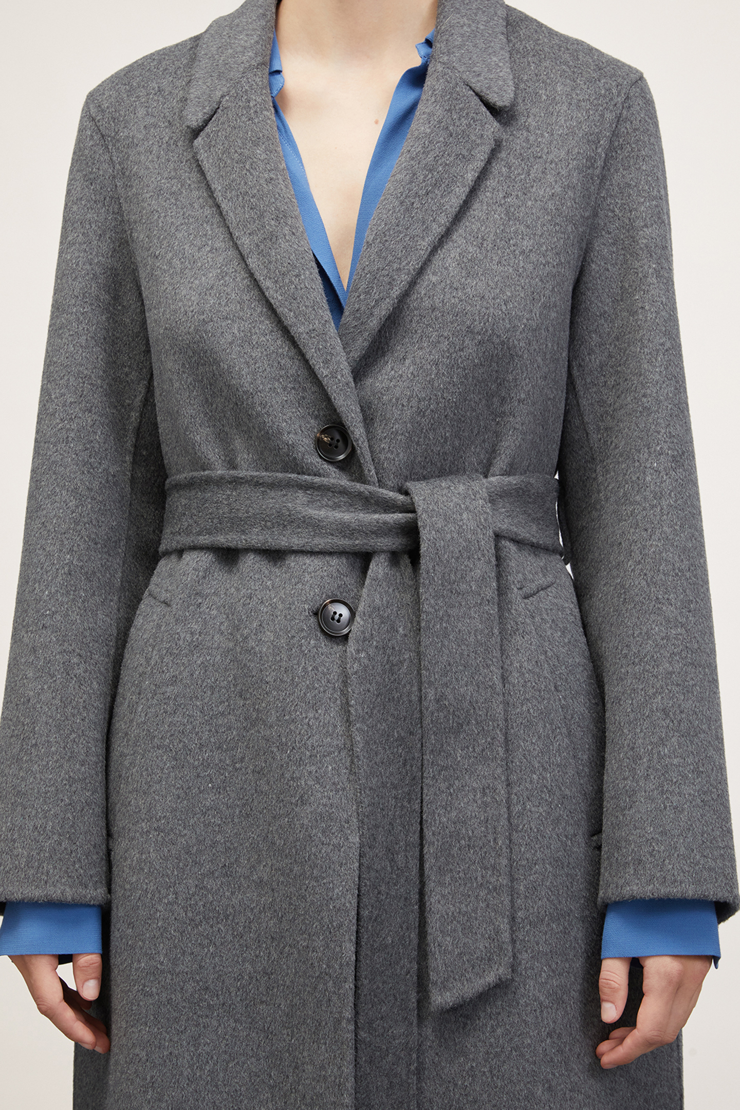 SINGLE-BREASTED DOUBLE CLOTH MIDI COAT GREY