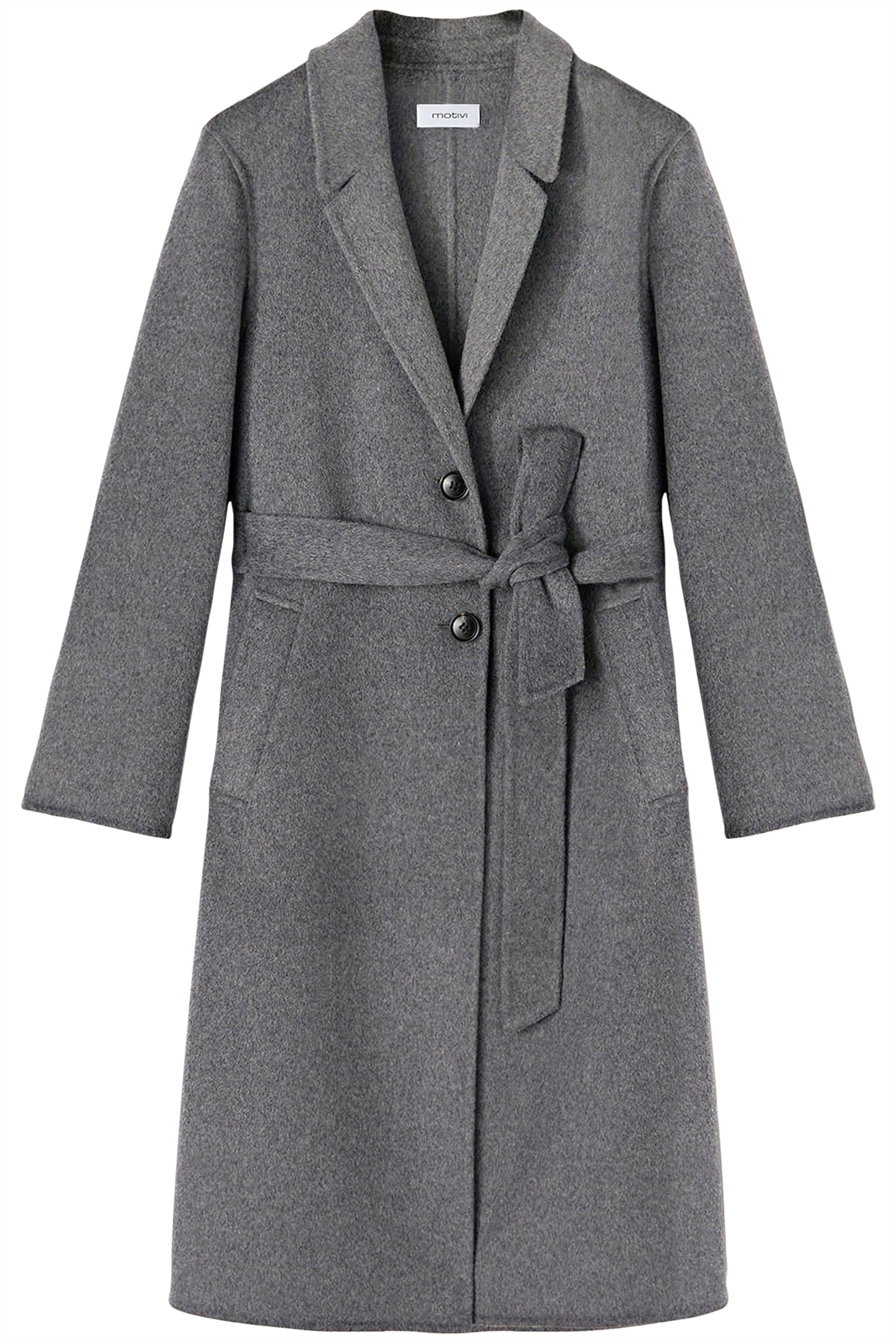 Wool Blend Double Cloth Midi Coat, Lapels And Single-Breasted Fastener With Visible Buttons, Tone-On-Tone Belt At The Waist Front Welt Pockets, Long Sleeves,
