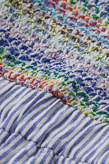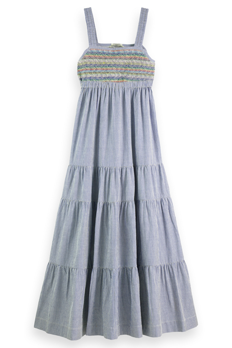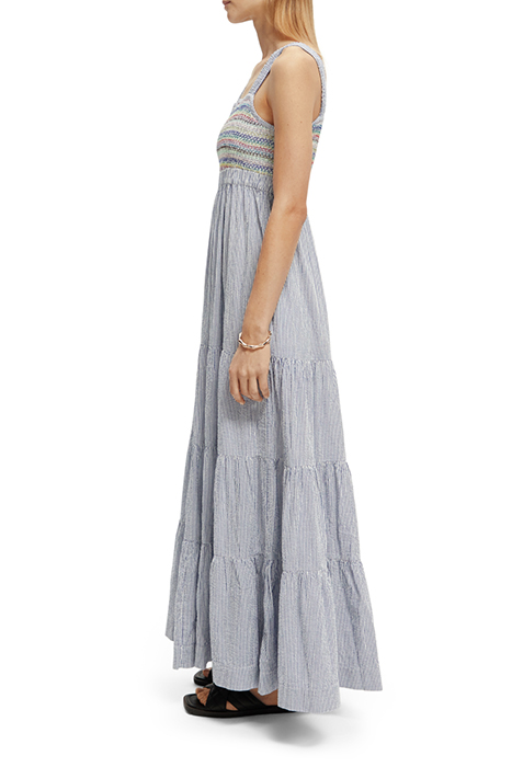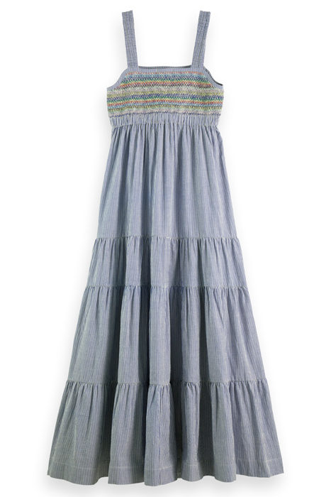 SLEEVELESS LONG DRESS WITH SMOCK STITCH DETAIL BLUE WHITE ST