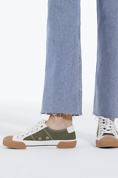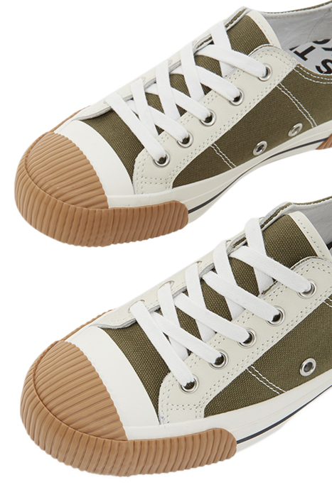 SNEAKERS BASSES EN TOILE AVEC EMPIECEMENTS EN CUIR KAKI
