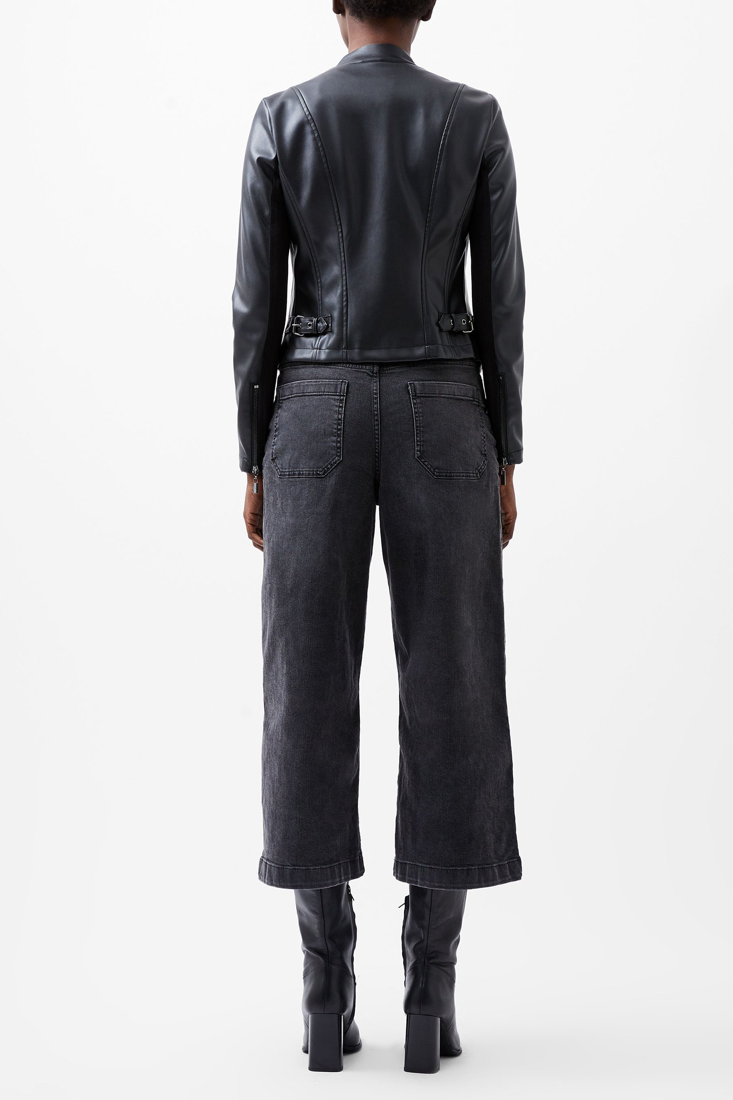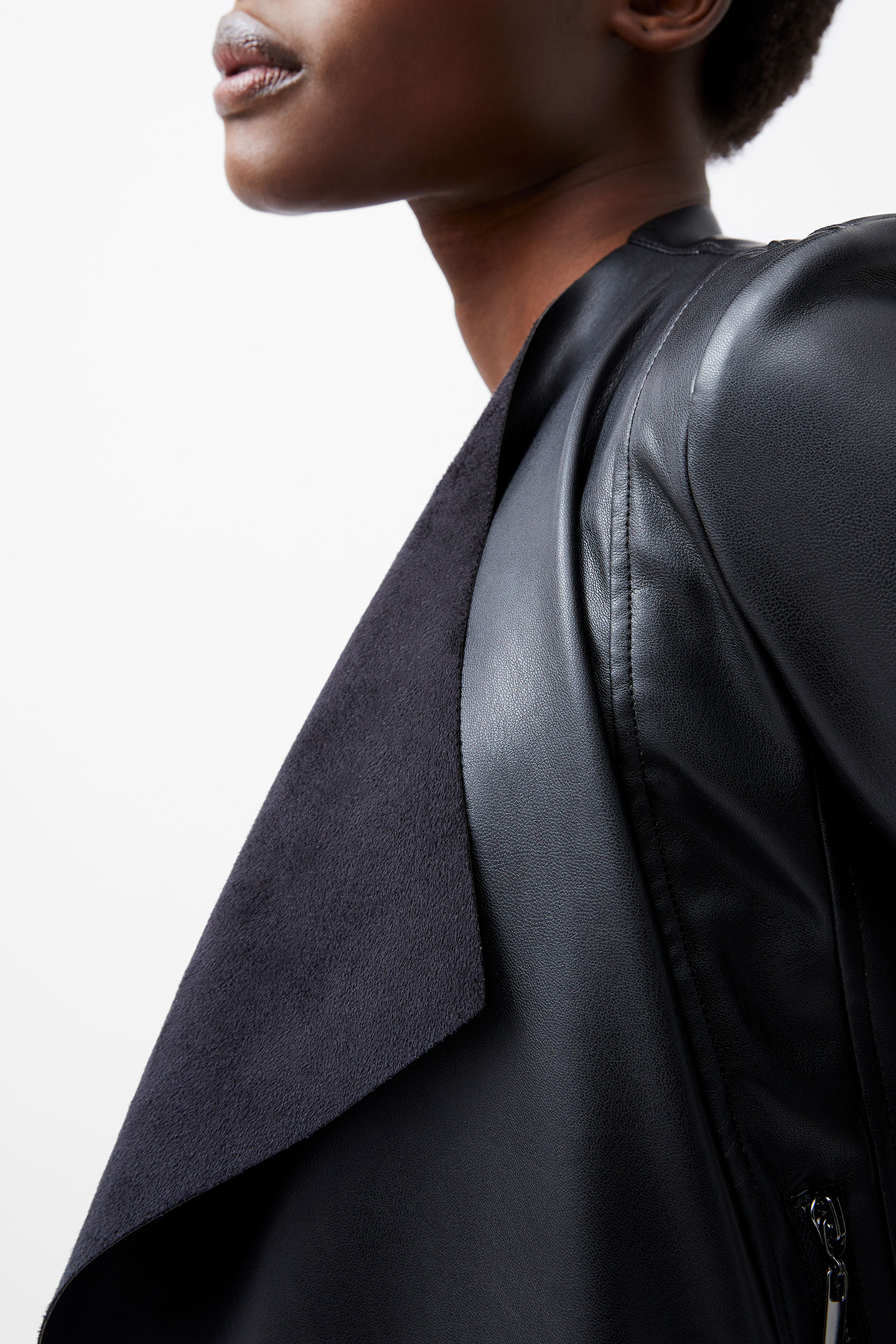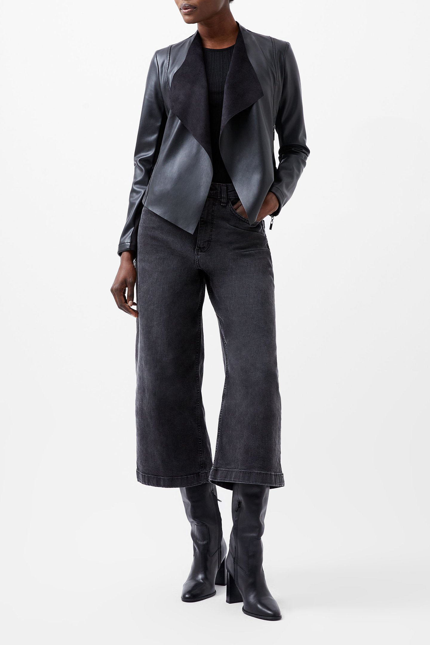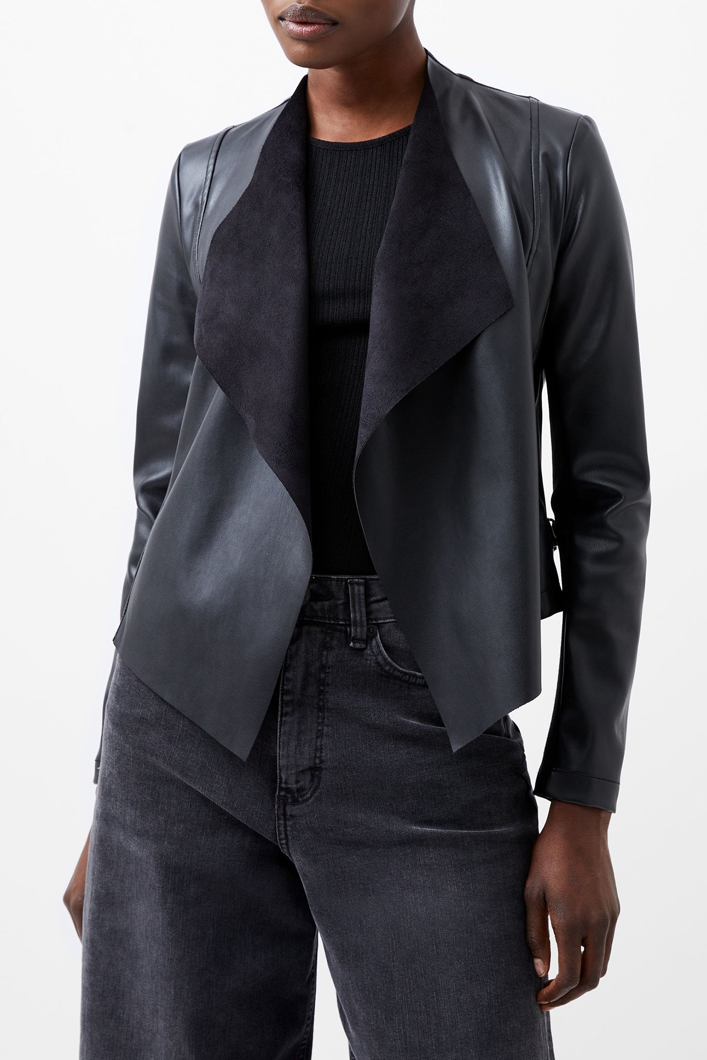 STEPHANIE PU WATERFALL FRNT JK BLACK