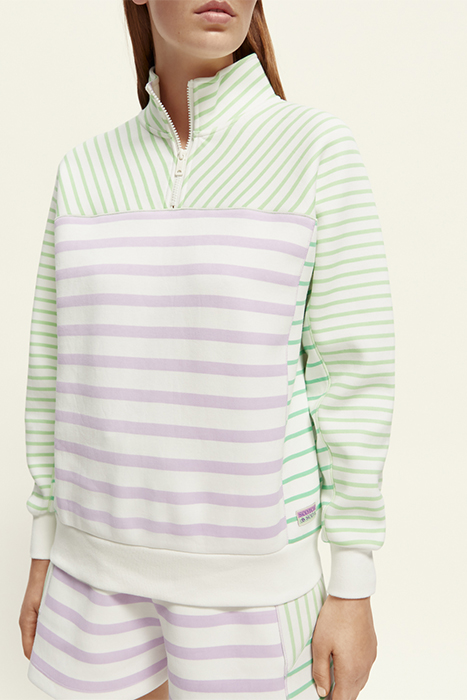 Introducing the Striped Relaxed Fit Half-Zip Sweater by Scotch & Soda, a must-have piece for your casual wardrobe. This stylish sweater features a timeless striped design that adds a touch of sophistication to any outfit.