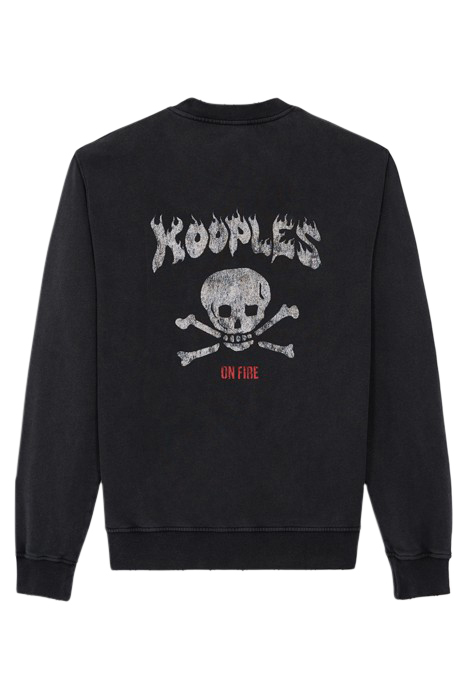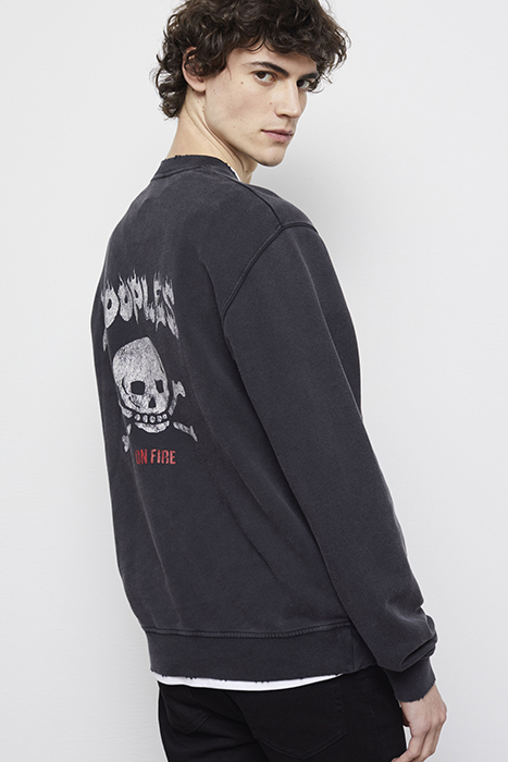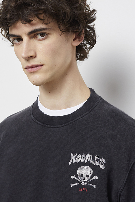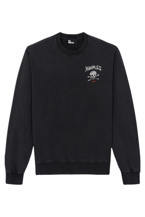 SWEAT COL ROND SKULL FLAMES BLACK WASHED