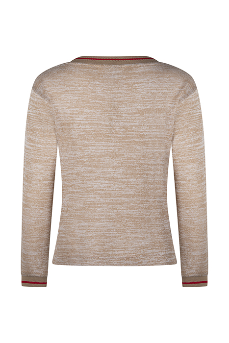 Sandwich komt dit seizoen met deze mooie gemêleerde trui in een boxy ontwerp, die je makkelijk op verschillende items kan combineren. Op de ronde halslijn en op de boord van de mouwen is een ajour detail met een streep aangebracht. Een leuk detail zijn de diepe splitjes in de zijkant van de zoom, waardoor de trui een luchtige uitstraling krijgt. We krijgen meteen zin in het voorjaar.