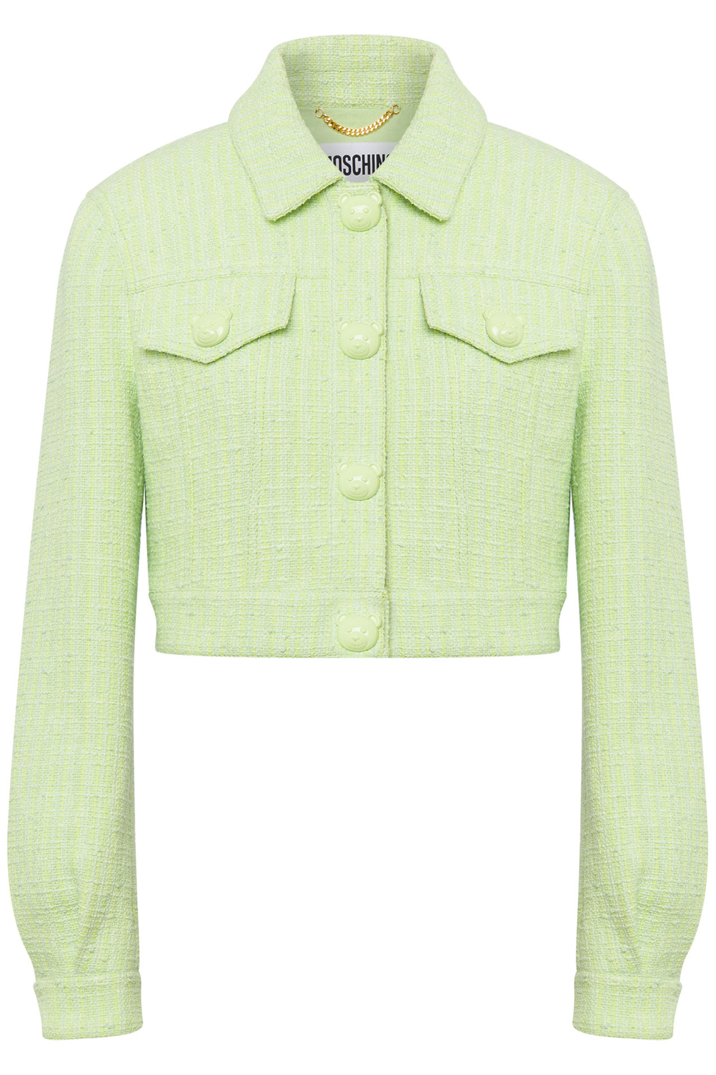 Cropped Jacket In Cotton Tweed And Nylon With Matching Buttons In The Shape Of Moschino Teddy Bear.