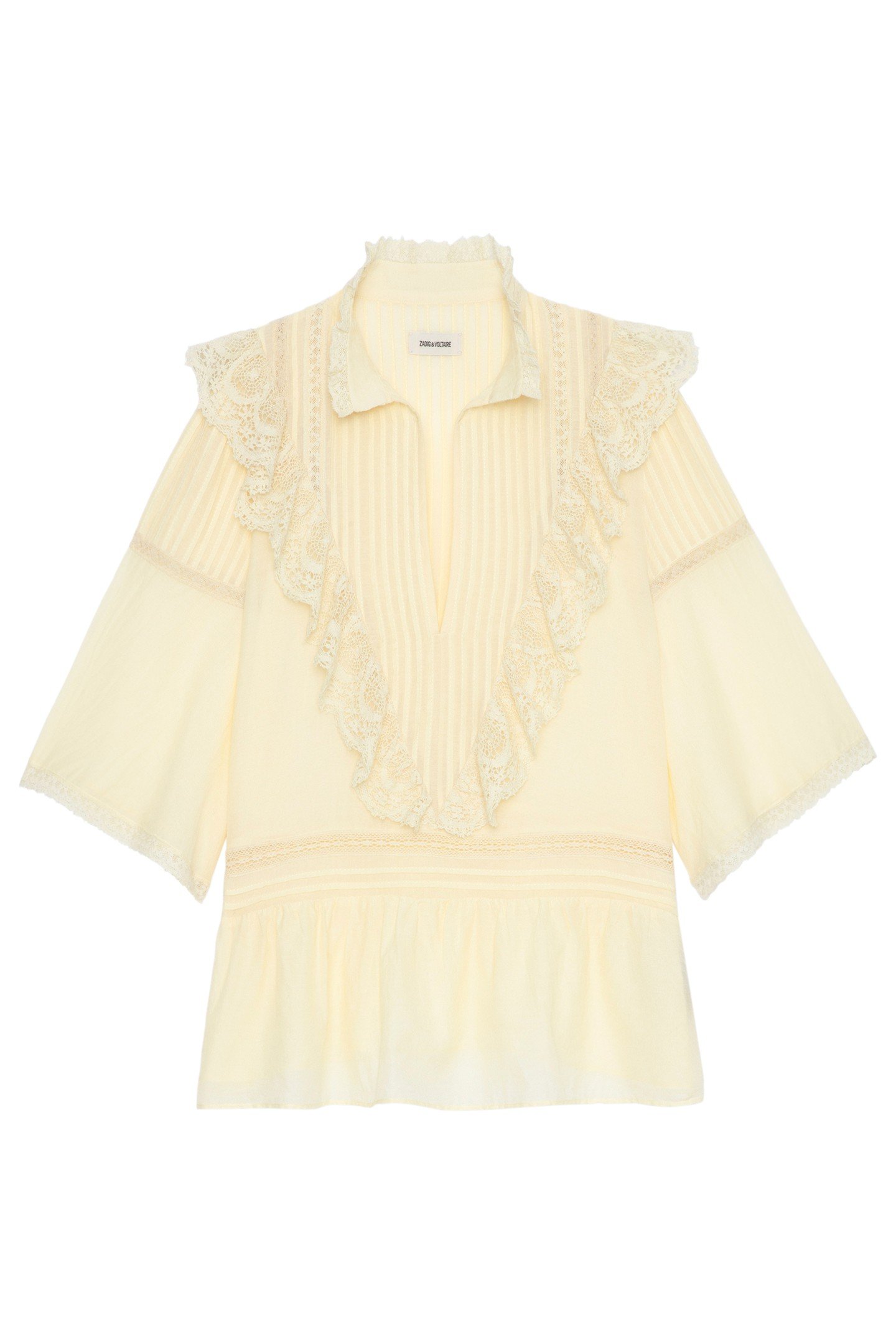 This Light, Romantic Top Features Guipure Ruffles And A Basque.