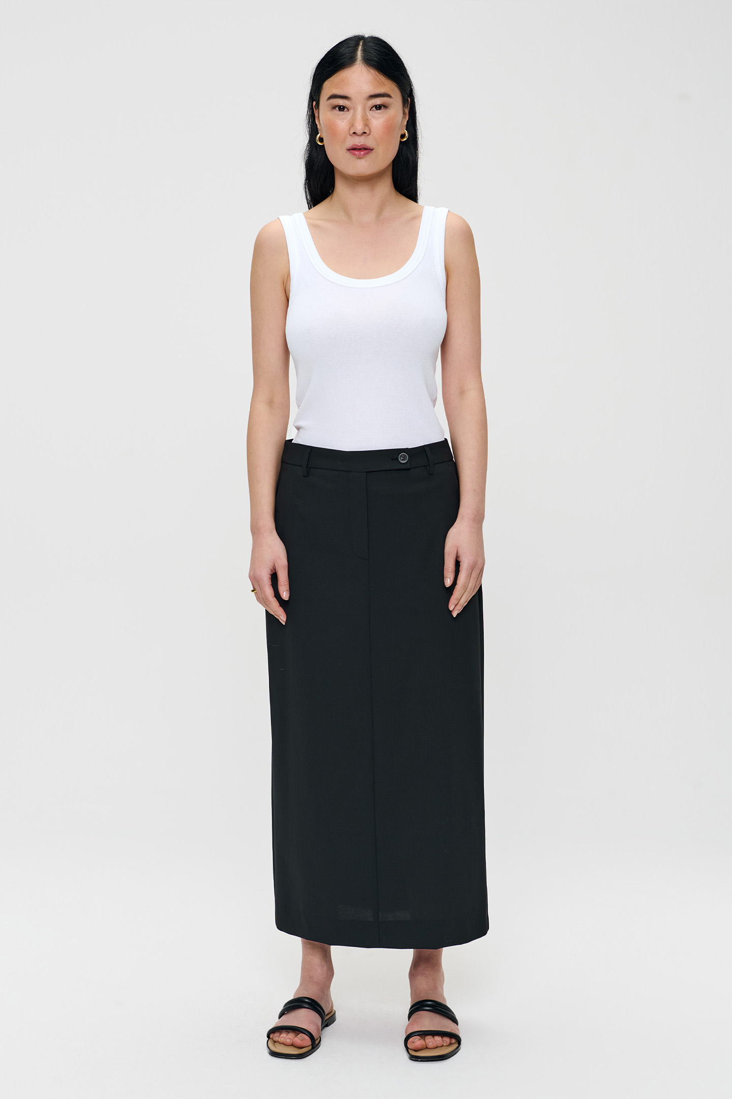 TROPICAL WOOL STRAIGHT SKIRT BLACK