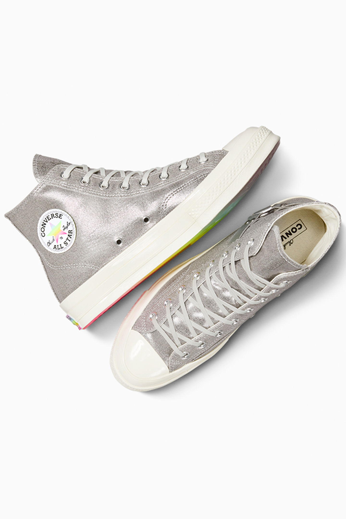 As Part Of The Converse Pride 2024 Collection, The Chuck 70 Pride Celebrates The Culture Of Queer Leaders Who Show The Way With Joy And Love. The Western Platinum Upper And Neon-Rainbow Hardware Reveal The Extraordinary Spirit Of The Lgbtqia+ Community, Showing Up And Defying Expectations, Preferring To Stand Out Rather Than Not Be Seen.