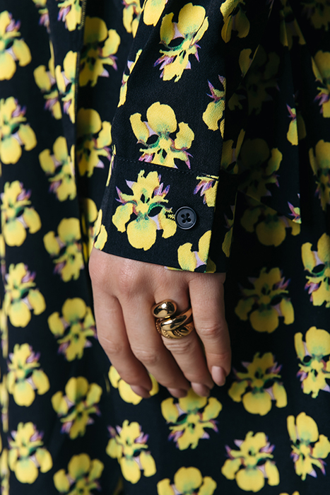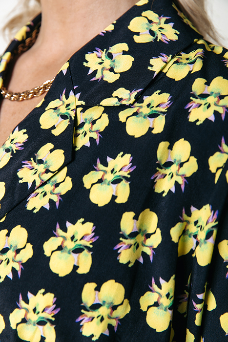 VIVIAN SMALL FLOWER MAXI DRESS LS BRIGHT YELLOW