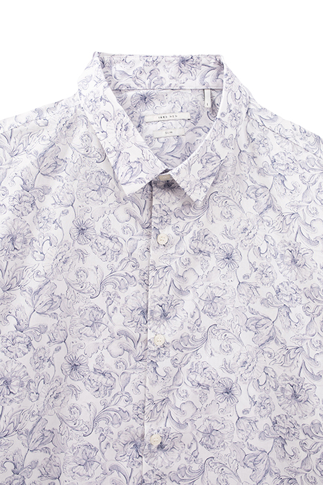 WHITE LIBERTY FABRIC SLIM SHIRT, BLUE FLOWERS WHITE