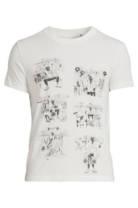 WHITE ORGANIC T-SHIRT WITH HIP-HOP CARTOON IMAGE OFF WHITE