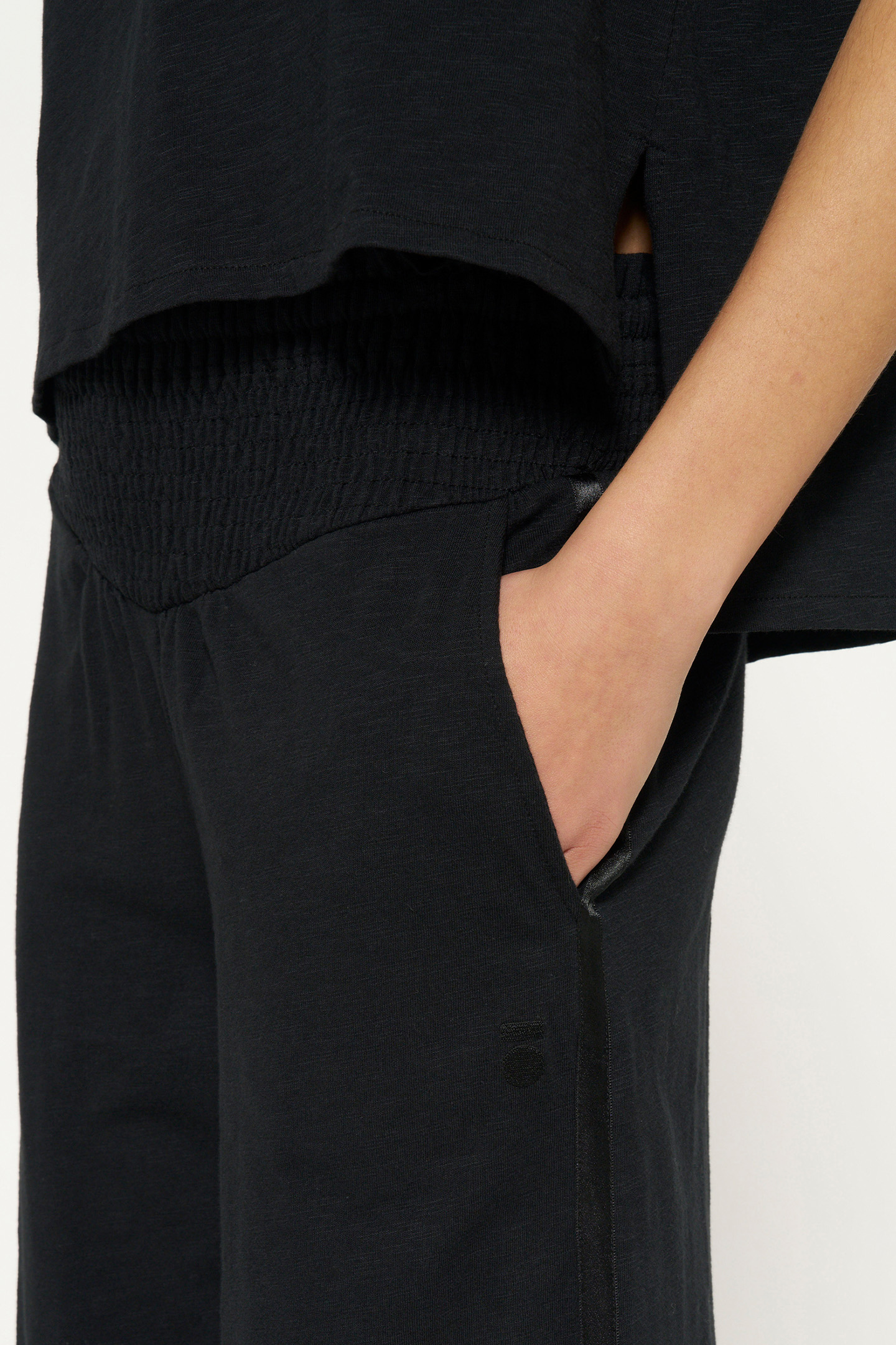 WIDE LEG SMOCK PANTS BLACK