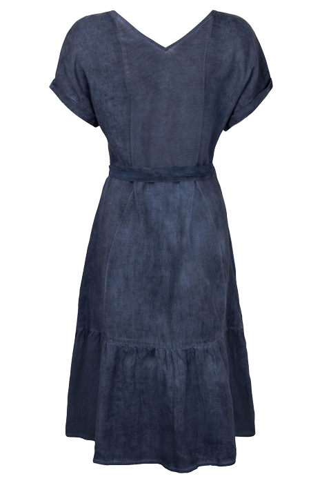 WIJDUITLOPENDE LINNEN JURK MET CEINTUUR NIGHT SKY