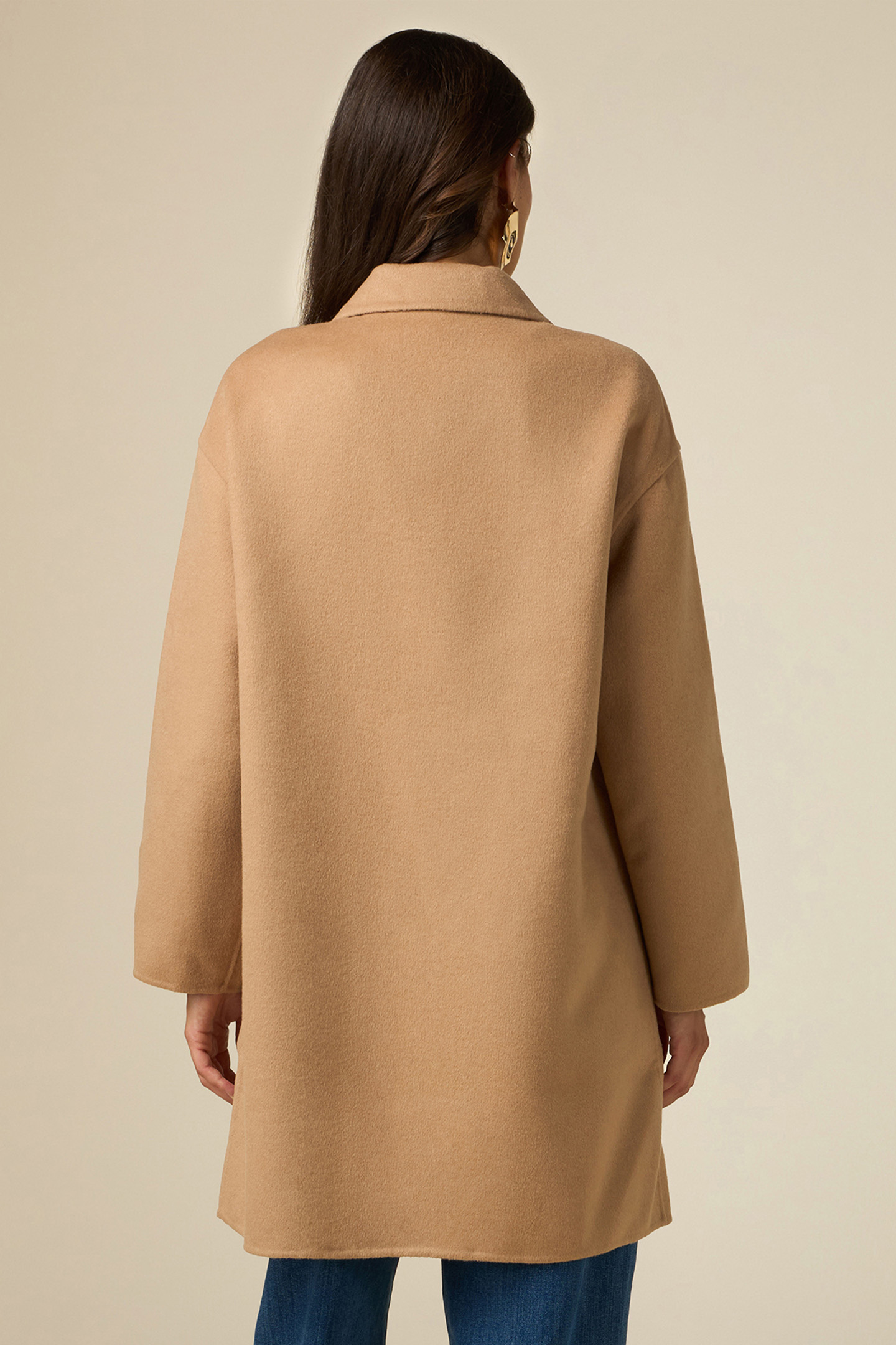 Unlined Wool Blend Double Cloth Coat, Double Breasted Closing With Metal Army Buttons, Slanted Pockets On The Front, The Fabric Contains Fibres From Partially Recycled Material, Hand-Sewn Garment.