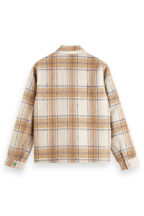 WOOL-BLEND ZIP-THRU CHECK OVERSHIRT OFFWHITE CAMEL CHECK