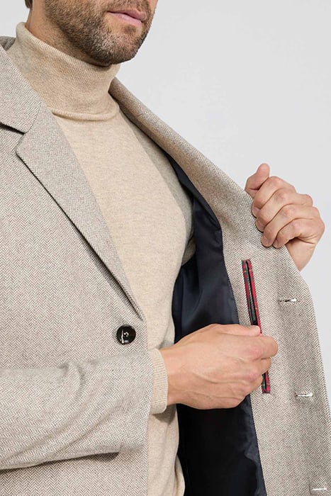 WOOL HERRINGBONE OVER COAT SAND