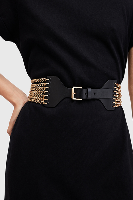 ZORA CHAIN WIDE BELT BLACK/WARM BRASS
