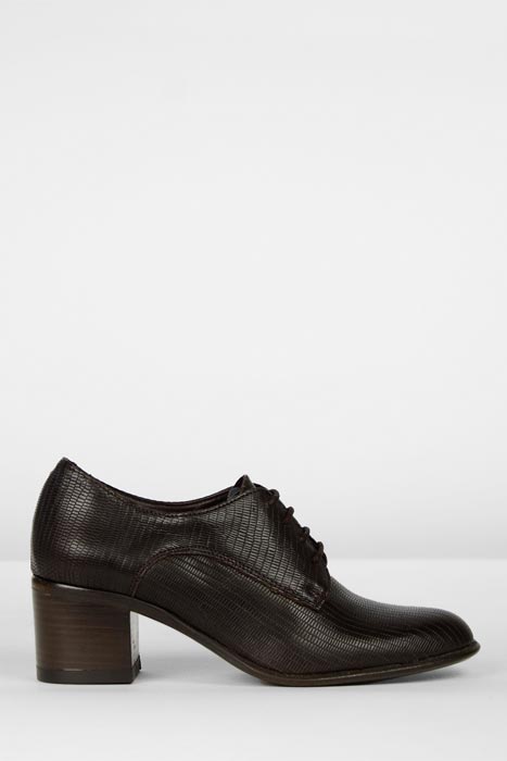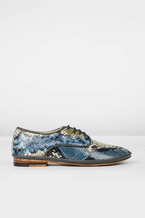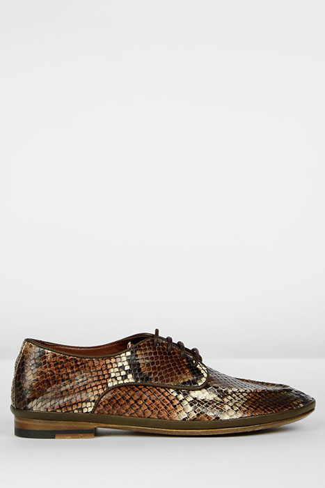 LACE-UP SHOE MULTI SNAKE PRINT LEATHER DARK BROWN CORAL ROSE